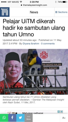Sebagaimana yang tersebar luas di media sosial, terdapat bukti yang menunjukkan wujud kerahan untuk memaksa pelajar-pelajar UiTM menghadiri sambutan ulangtahun UMNO yang ke-71 di Bukit Jalil, malam ini.